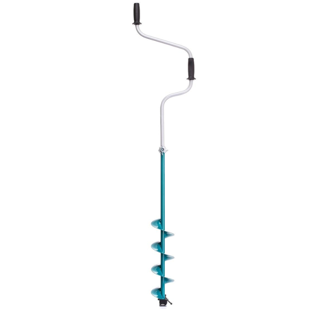 Расположение рукояток позволяет вращать ледобур одновременно двумя руками, что позволяет увеличить скорость бурения лунок во льду.