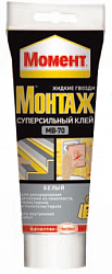 Момент Монтаж Суперсильный МВ-70 белый обладает высокой начальной силой склеивания (70 кг/м2) и отлично подходит для различных ремонтных работ. Области применения: дерево, металл, ПВХ, керамика, ДСП, МДФ, гипсокартон, пробка, полистирол, пенопласт, гипс и другие подобные материалы. Не подходит для для полиэтилена, полипропилена, тефлона.