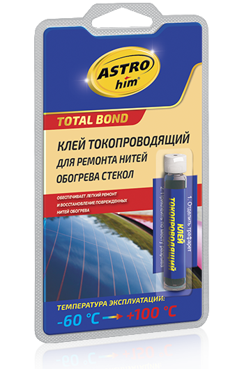 Токопроводящий клей ASTROhim предназначен для ремонта нитей обогрева заднего стекла автомобиля с повреждениями (разрывами) не более 2 см.Перед нанесением тщательно взболтайте содержимое флакона. Отделите самоклеющуюся часть трафарета от подложки и наклейте на стекло в районе разрыва нити обогрева таким образом, чтобы место обрыва было посредине прорези трафарета. Нанесите один слой клея на стекло через трафарет при помощи кисточки сразу же после перемешивания, через минуту повторно нанесите второй слой клея. После высыхания клеевого шва (примерно через 15-20 минут) отклейте трафарет. Отремонтированная нить готова к работе.