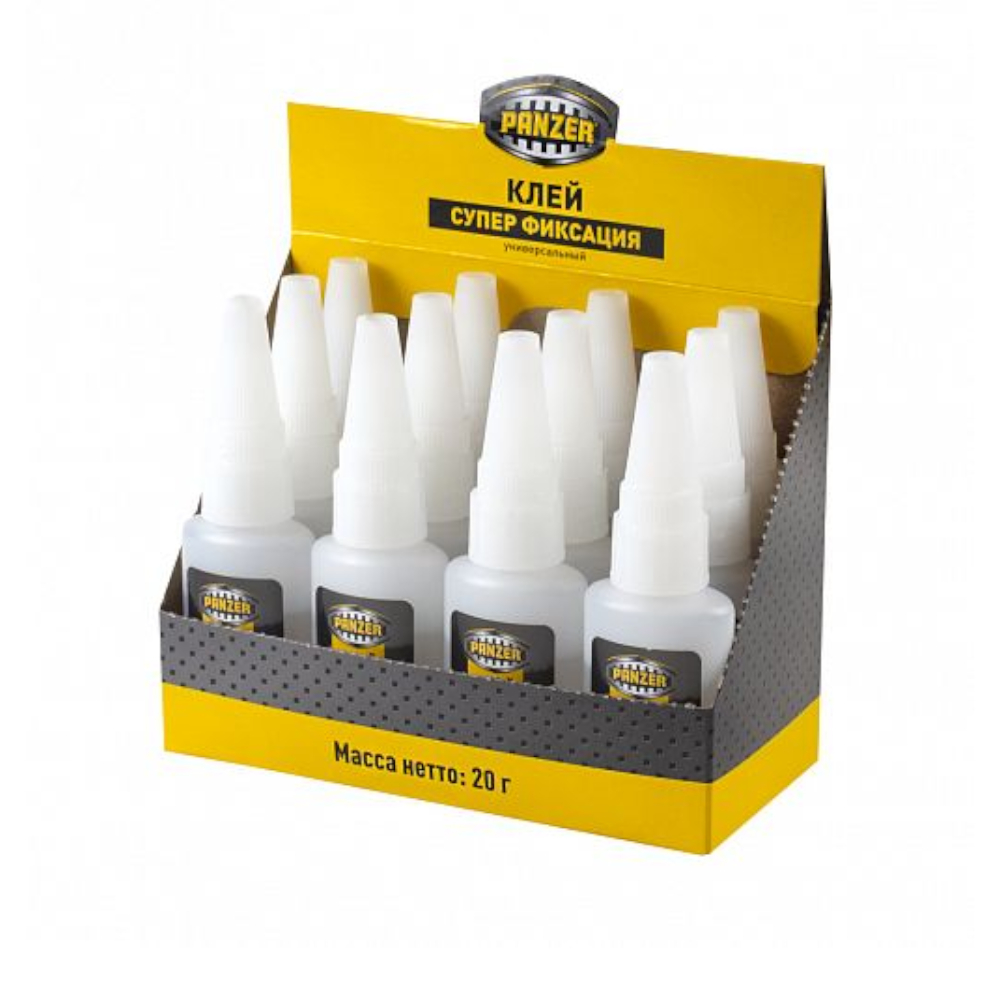 Клей супер фиксация универсальный 20г в шоу-боксе "PANZER"