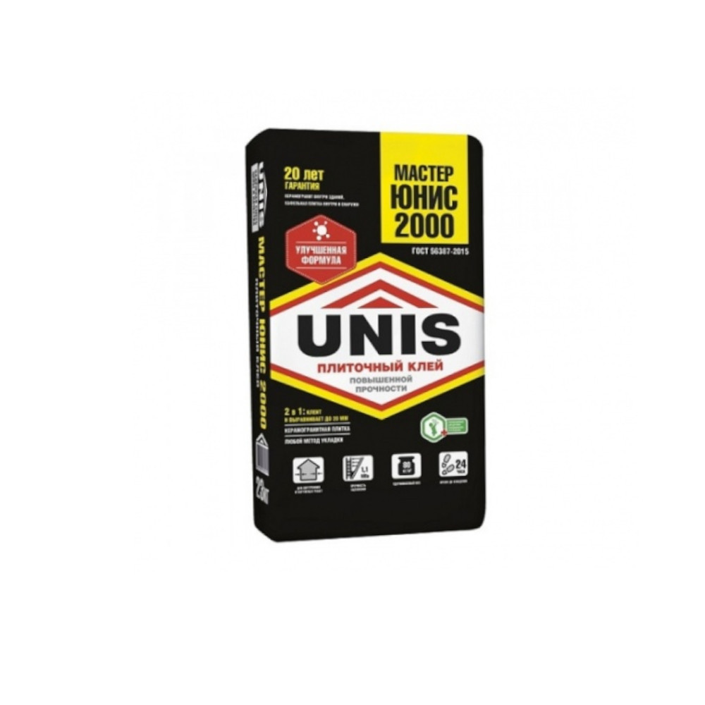 Плиточный клей Юнис 2000 применяется для укладки различной плитки на поверхность стен или пола. Данный материал подходит для наружных и внутренних работ. Готовый раствор обладает хорошей пластичностью и жизнеспособностью 3 часа - что делает клей удобным в работе. Благодаря высокой прочности сцепления с основанием, можно укладывать плитку методом "сверху-вниз". Клей поставляется в виде сухой смеси, расфасованной в бумажные мешки по 25 кг.