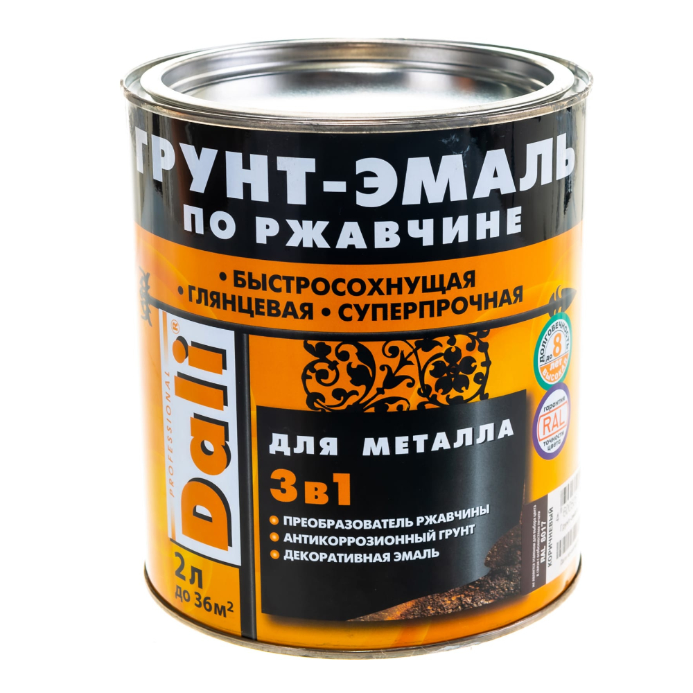 ГРУНТ- ЭМАЛЬ ПО РЖАВЧИНЕ "DALI" 3 В 1 КОРИЧНЕВАЯ (RAL 8017) 2 Л (3) "РОГНЕДА"