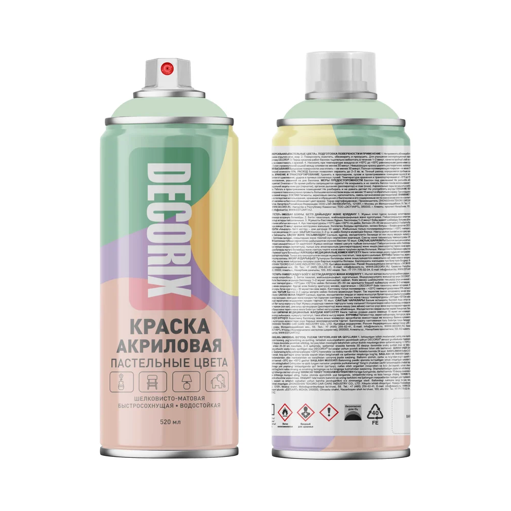 Краска аэрозольная универсальная, пастельные цвета DECORIX, 520 мл, пастельный зеленый. Краска идеально подходит для декорирования и реставрации мебели, фоторамок, шкатулок, цветочных горшков, панно, художественного литья, кованных металлических изделий и других предметов интерьера выполненных из керамики, древесины, металла, камня, стекла и некоторых видов пластмасс.