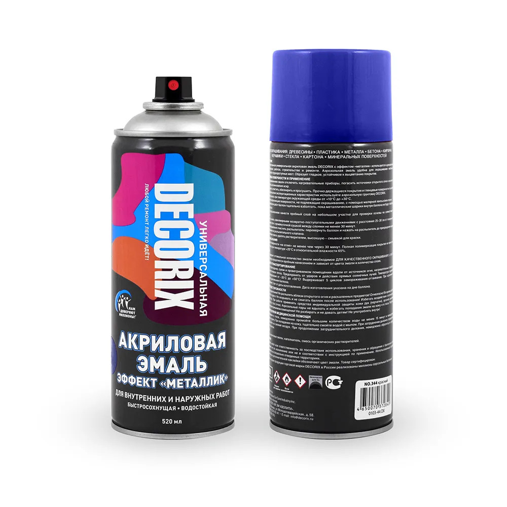 Высококачественная универсальная акриловая эмаль DECORIX с эффектом «металлик» используется в декоративно-оформительских работах, строительстве и ремонте.