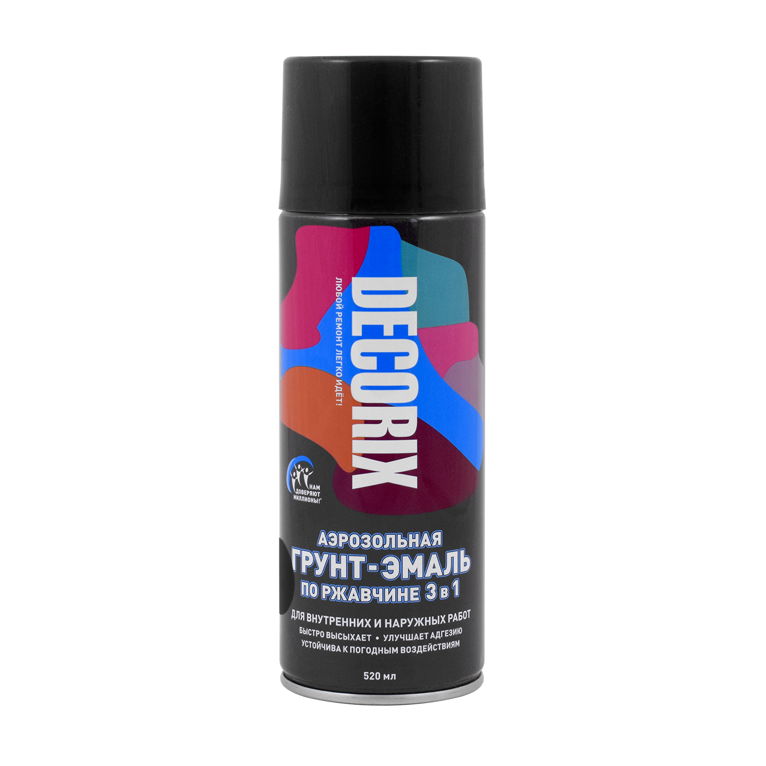 Грунт-эмаль аэрозольная по ржавчине 3в1 DECORIX 520мл,черный глянцевый