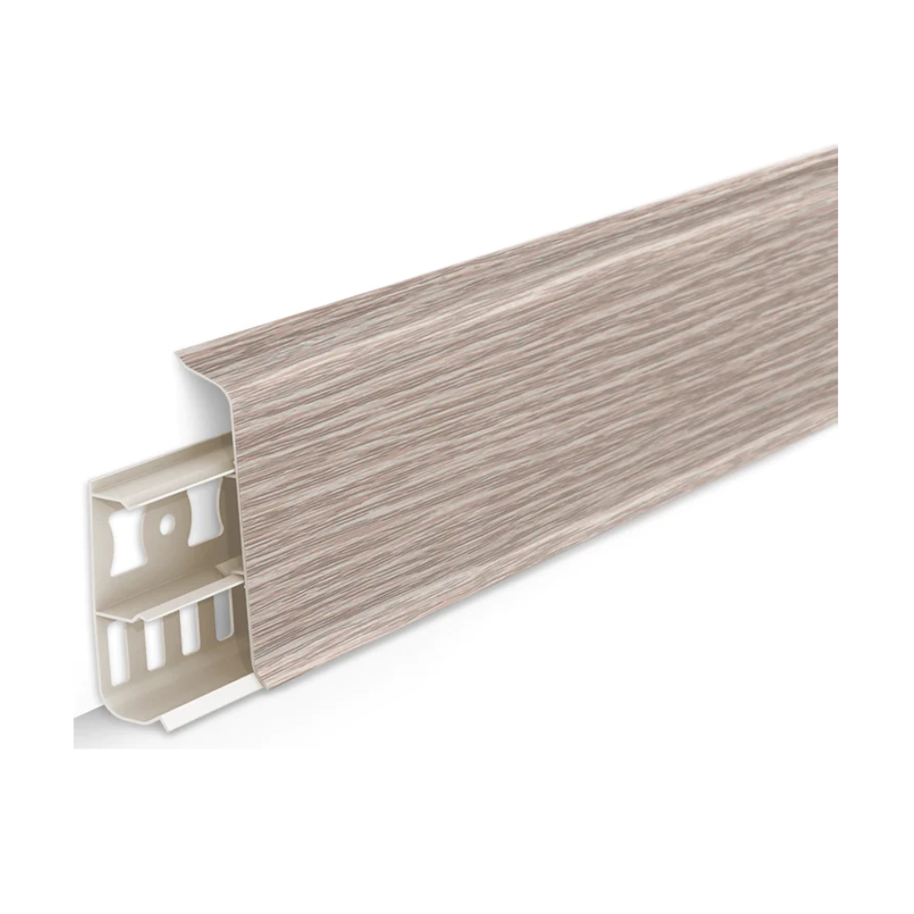 Плинтус напольный 70мм 2,2м "Деконика" Дуб латте / 229 - это продуманный современный дизайн с задним монтажным профилем и цельной лицевой частью. Легкий монтаж за счет формы и перфорации основы плинтуса. Общая коллекция реалистичных декоров плинтусов Идеал с защитным покрытием, продлевающим срок службы.