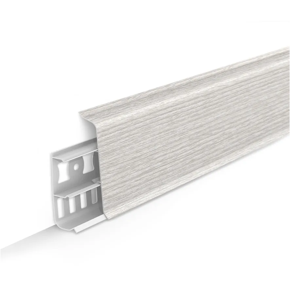 лицевой частью. Легкий монтаж за счет формы и перфорации основы плинтуса. Общая коллекция реалистичных декоров с защитным покрытием, продлевающим срок службы.
