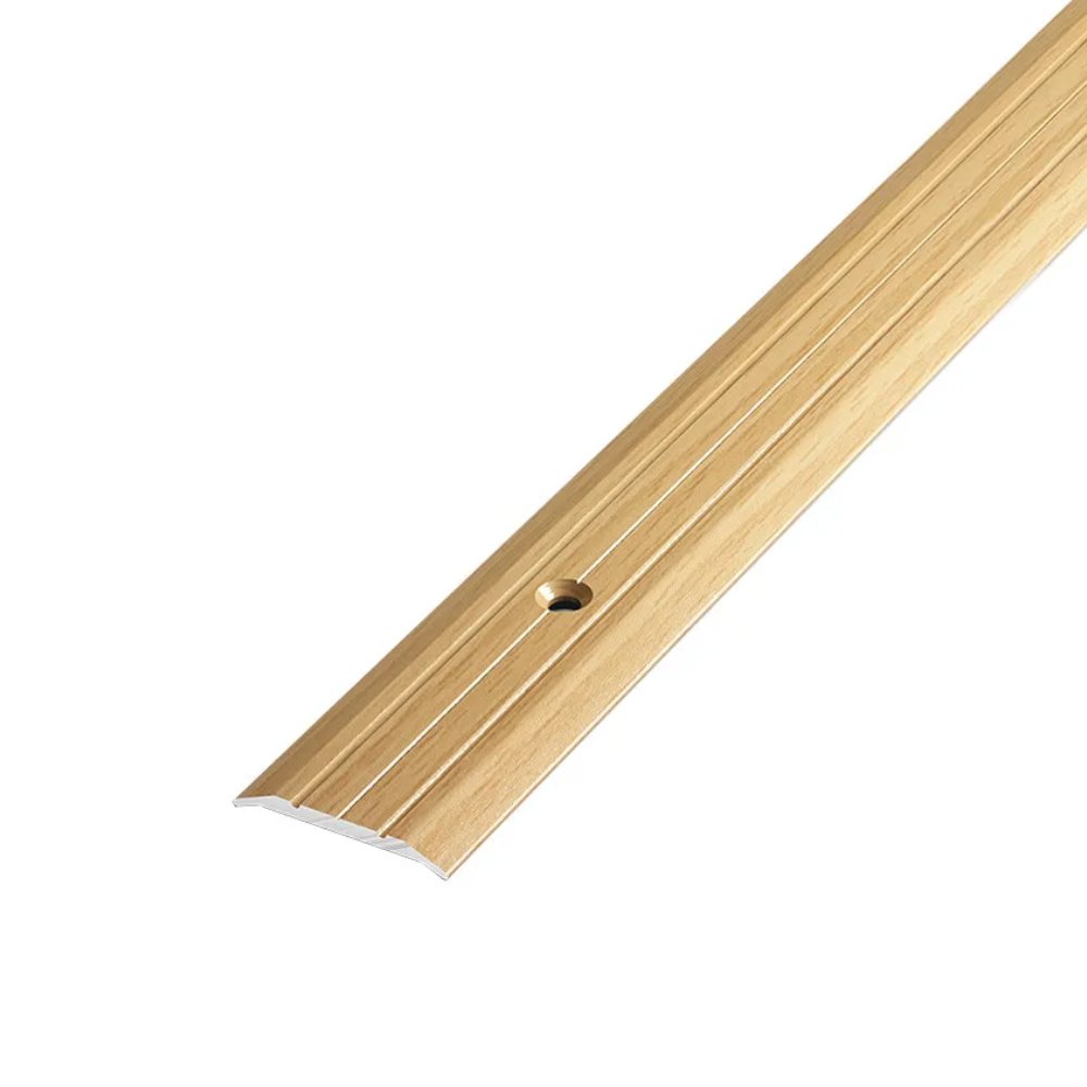 Данная модель предназначена для скрытия стыков двух одноуровневых напольных покрытий, изготовленных из различных материалов. Пороги с отверстиями для монтажа поставляются в индивидуальной упаковке с саморезами и дюбелями.