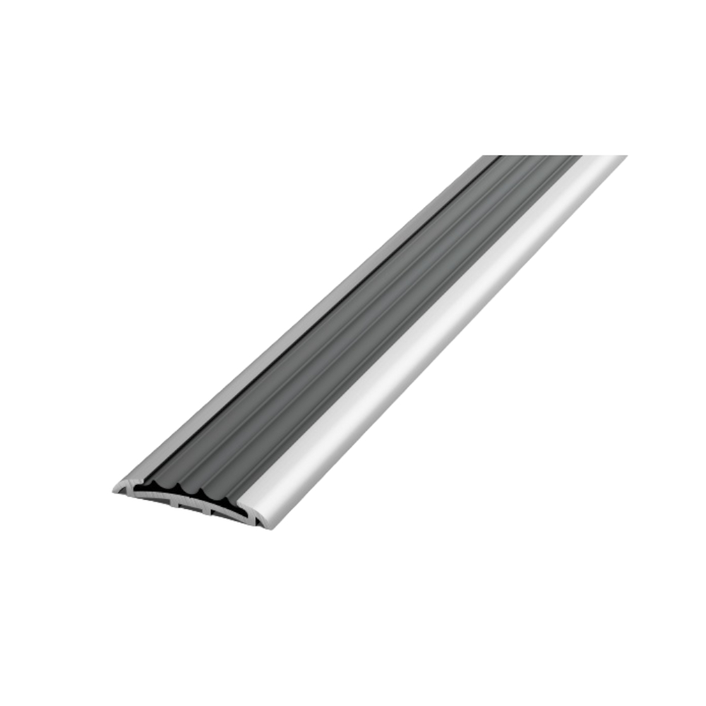 Плоский профиль шириной 40 мм. С антискользящей вставкой из ПВХ. Со скрытыми монтажными отверстиями. Предназначен для входных групп, как вариант грязезащиты и антискольжения. Каждый профиль поставляется в индивидуальной упаковке, оснащенной пластиковым европодвесом, в комплекте с саморезами и дюбелями.