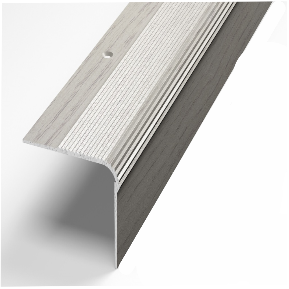 Угловой профиль из алюминия служит для защиты углов и ступеней лестницы. Длина 900мм. Размер горизонтальной стороны 54мм. Вертикальной 41,8мм.Профиль служит для облицовки и защиты наружных углов любой поверхности от механических повреждений. В угловом пороге есть отверстия для удобного монтажа, противоскользящие насечки, не подвергается коррозии. Каждый профиль поставляется в индивидуальной упаковке, оснащенной пластиковым европодвесом, в комплекте с саморезами и дюбелями.