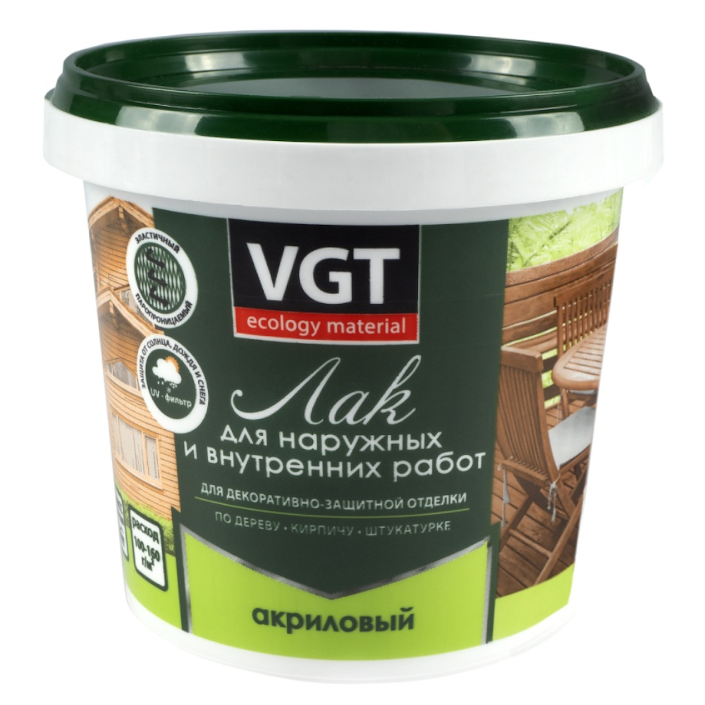 ЛАК ДЛЯ НАРУЖ./ВНУТР. РАБОТ МАТОВ. 0,9 КГ (1/6) "ВГТ"