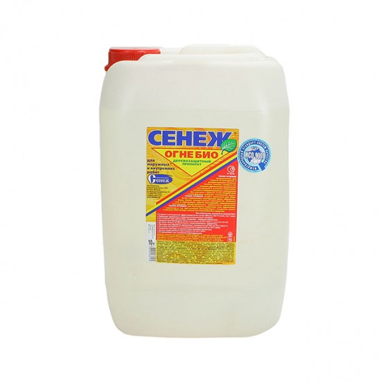 Средство «СЕНЕЖ ОГНЕБИО» предназначено для комплексной огнезащиты и биозащиты древесины - защиты от возгорания, распространения пламени, гниения, плесени, синевы и насекомых-древоточцев внутри помещений и на открытом воздухе (под навесом) в условиях гигроскопического и конденсационного увлажнения без контакта с грунтом, воздействия атмосферных осадков, почвенной влаги. Допускается применять «СЕНЕЖ ОГНЕБИО» для защиты элементов наружной службы, подверженных атмосферным осадкам, при последующем покрытии влагостойким лакокрасочным материалом.
