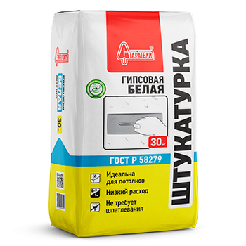 Классическая гипсовая штукатурка белого цвета. Предназначена для высококачественного выравнивания ручным способом стен и потолков в помещениях с нормальной влажностью.