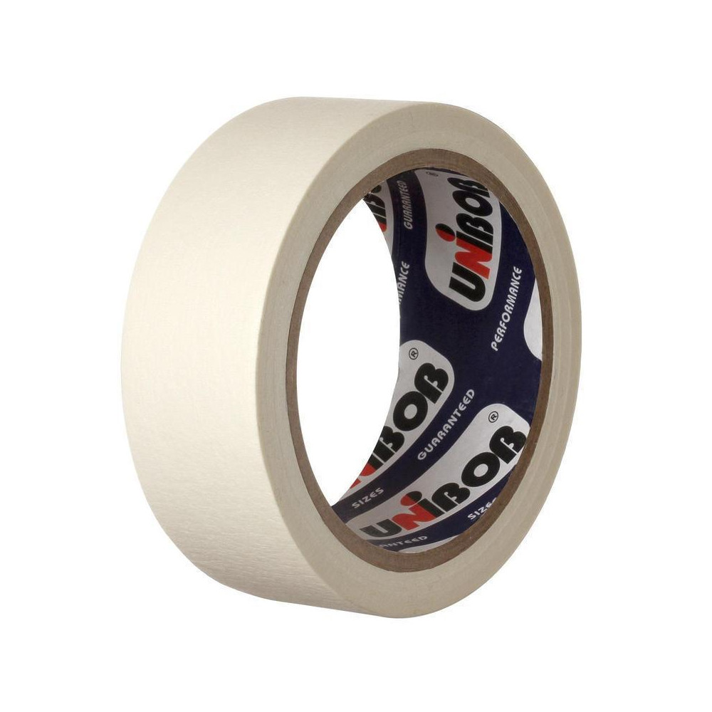 Клейкая лента малярная Unibob белого цвета, ширина 25 мм, длина 25 метров. Применяется для локальной защиты поверхности при проведении малярных, штукатурных и строительных работ. Обеспечивает четкие границы при окрашивании. Основа клейкой ленты — крепированная бумага с влагостойкой пропиткой. Клеевой слой — натуральный каучук на основе растворителя. Рабочая температура: от 10 до 60 градусов.