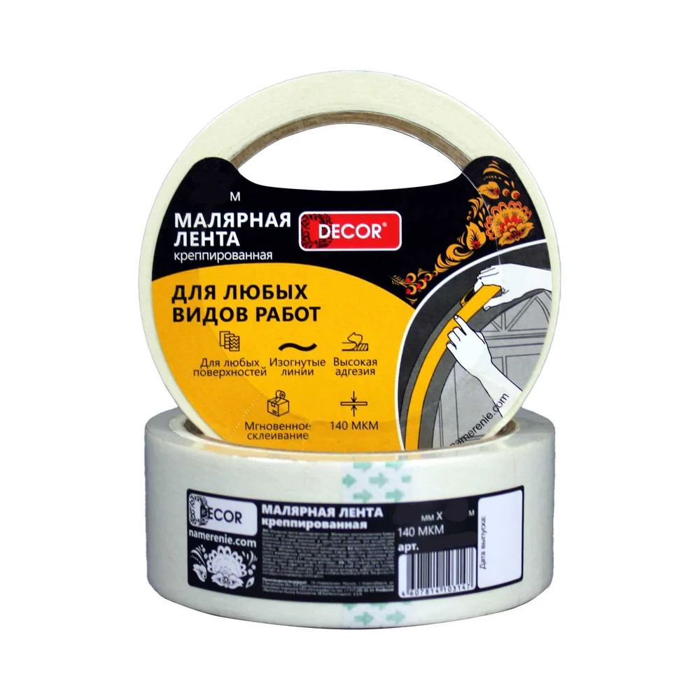 Лента малярная DECOR 38мм х 25м, креппированная, 140мкм (63шт/уп)