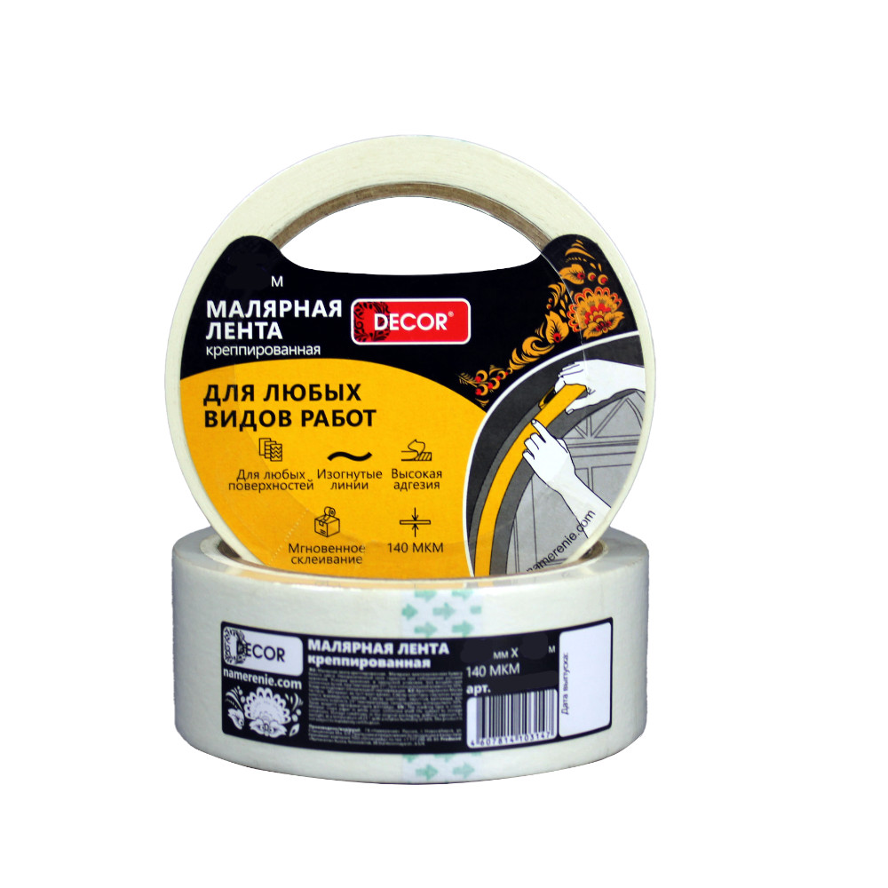 Лента малярная DECOR 48мм х 25м, креппированная, 140мкм (54шт/уп)