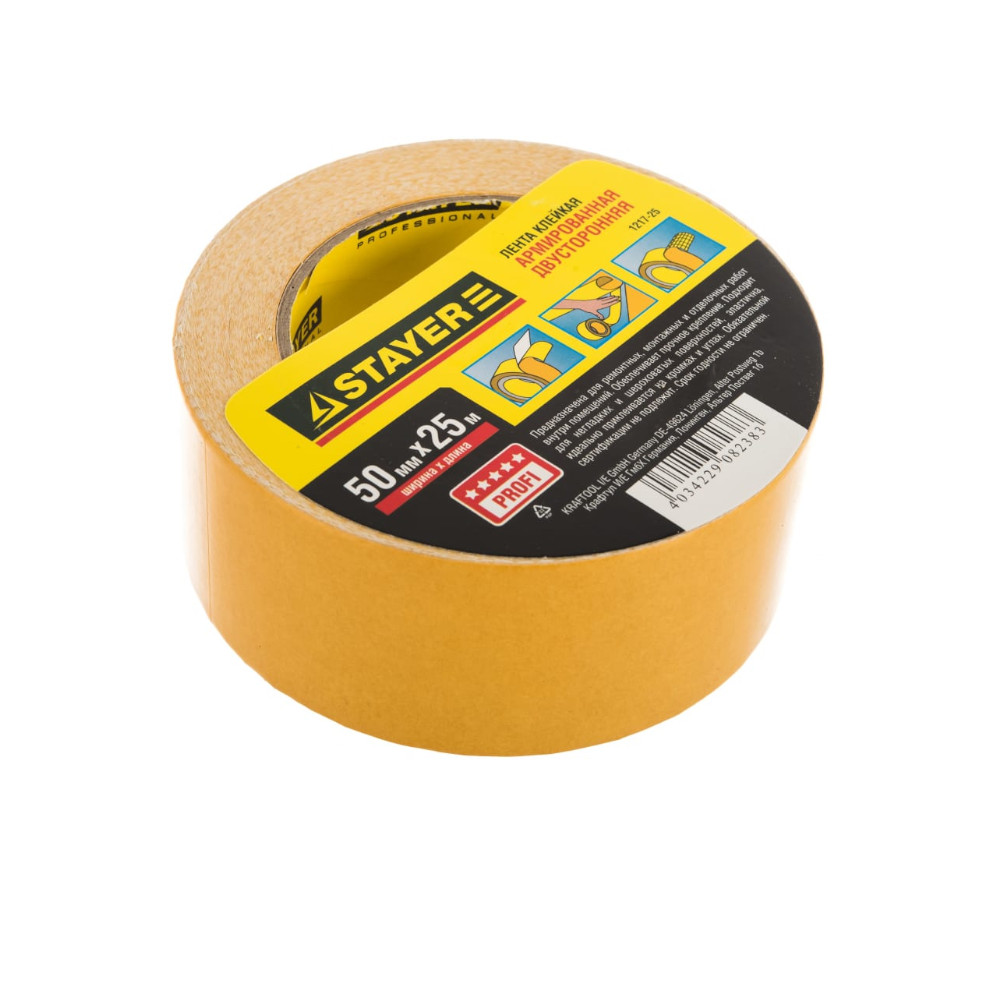 Лента двухсторонняя клейкая на тканевой основе, STAYER Profi 1217-25, 50мм х 25м