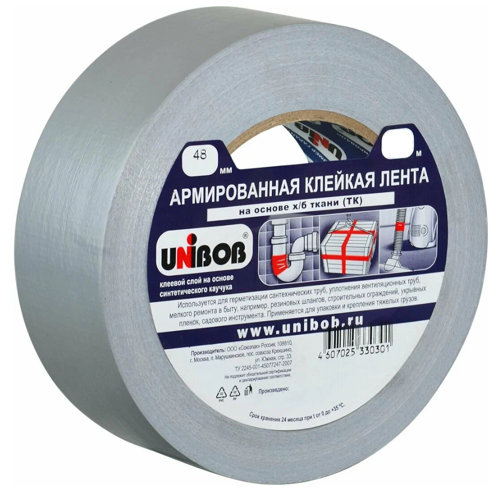Лента клейкая армированная 48 мм*40 м, серая "UNIBOB" - универсальная клейкая лента из хлопчатобумажной ткани, ламинированная полиэтиленом, используется для уплотнения вентиляционных труб, ремонта поверхностей, например сидений в автомобилях, резиновых шлангов, строительных ограждений, укрывных пленок. Данные типы лент применяются также для соединения элементов упаковки, несущих повышенные нагрузки. Основные преимущества продукта:
