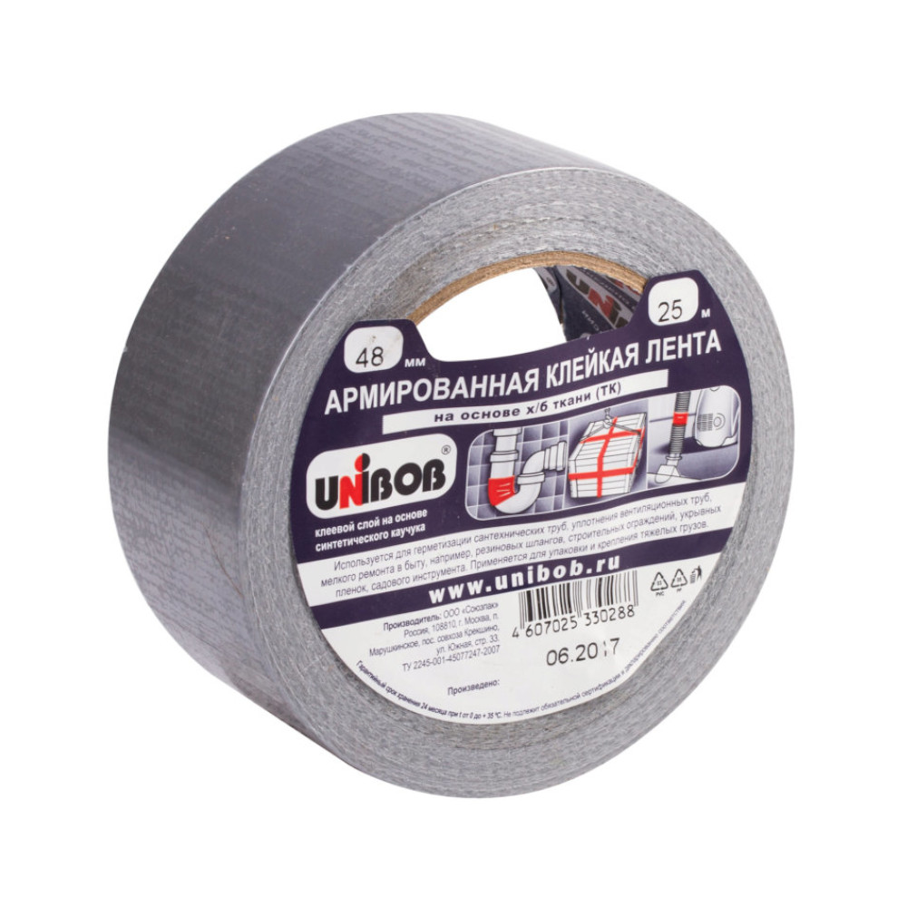 Лента клейкая армиров 48мм*25м серая (36) "UNIBOB".