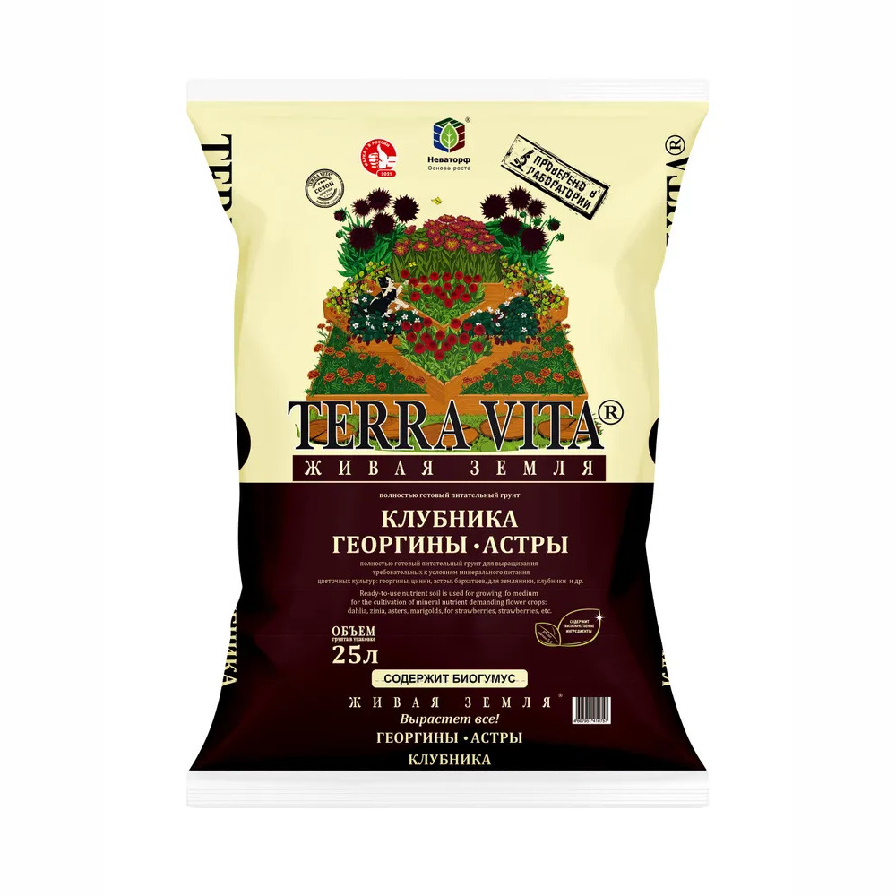 Грунт для клубники-георгин-астры 25л Живая Земля 2/80 Неваторф