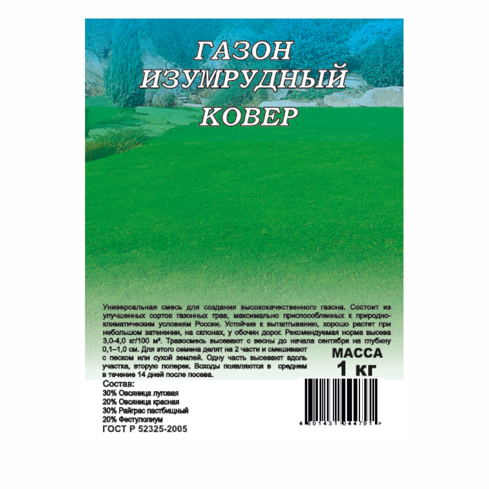 Универсальная смесь для создания высококачественного газона. Состоит из улучшенных сортов газонных трав, максимально приспособленных к природно-климатическим условиям России. Устойчив к вытаптыванию, хорошо растет при небольшом затенении, на склонах, у обочин дорог. Травосмесь высевают с весны до начала сентября на глубину 0,1–1,0 см. Для этого семена делят на 2 части и смешивают с песком или сухой землей. Одну часть высевают вдоль участка, вторую поперек. Всходы появляются в среднем в течение 14 дней после посева.