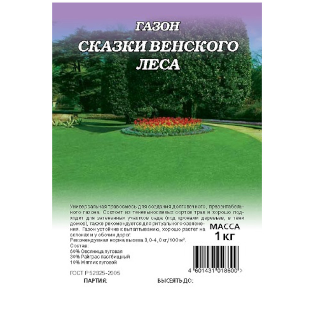 Универсальная травосмесь для создания долговечного, презентабельного газона. Состоит из теневыносливых сортов трав и хорошо подходит для затененных участков сада, также рекомендуется для ритуального озеленения. Газон устойчив к вытаптыванию, хорошо растет на склонах и у обочин дорог. Состав: овсяница луговая 60%, райграс пастбищный 30%, Мятлик луговой 10%.