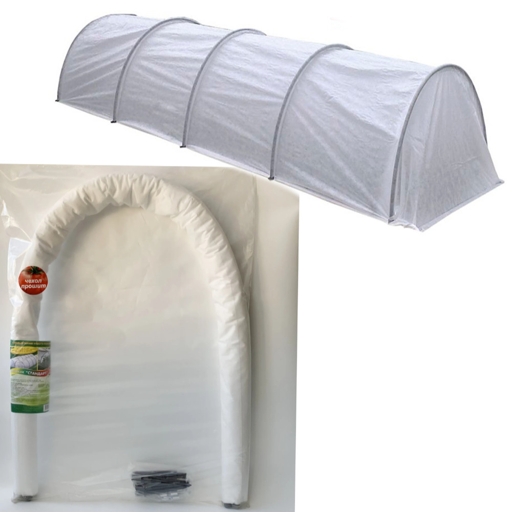 Укрывной материал у парников особенный. Если для теплиц используется жесткий, но прозрачный поликарбонат, то для парника наиболее подходящим является более легкий спанбонд. Это тонкий нетканый материал, изготовленный из полипропиленового волокна по технологии термоскрепления. Так, полимер под воздействием высокой температуры расщепляется на волокна, которые сплавляются между собой в полотно. На финальном этапе производства спанбонд может обрабатываться специальными составами для придания дополнительных характеристик. Полотно защищает саженцы от перепадов температур и других неблагоприятных факторов. Как правило, в сельском хозяйстве используется разновидность спанбонда с дополнительной защитной обработкой от воздействия ультрафиолета — агроволокно. Белое агроволокно защищает растения от солнца и низких температур. Ещё одно важное преимущество перед другими материалами – невысокая цена наряду с хорошими эксплуатационными характеристиками, в отличие, например, от полиэтилена, который к тому же не пропускает влагу и воздух. Спанбонд с этим же справляется на все 100%, поэтому под ним риск переувлажнения или перегрева растений значительно ниже. Также под спанбондом не скапливается конденсат, а это способствует созданию более здорового микроклимата. Спанбонд зачастую оказывается оптимальным вариантом для парника. Плюс, спанбонд относится к бюджетной ценовой категории.