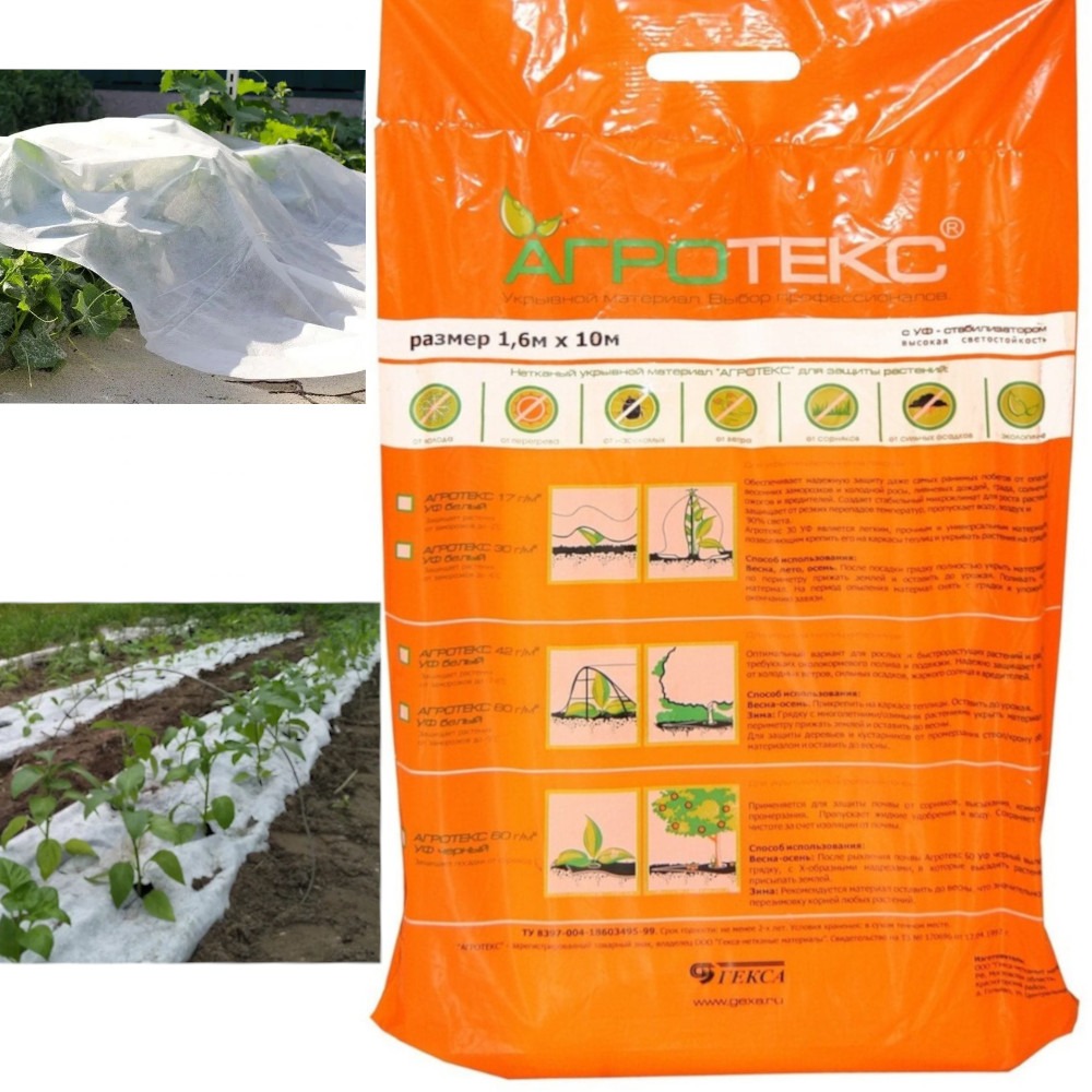 Применяется для укрытия дуг и теплиц. Плотный материал помогает защитить растения от переопыления, сохранить рассаду весной и получить дополнительный доход за счёт продажи раннего урожая. «Агротекс 42» обеспечивает оптимальные условия, благодаря чему всходы появляются быстрее и растения развиваются лучше, а их урожайность – повышается. Материал создаёт благоприятный микроклимат, защищает посевы и выросшие растения от холода и вредителей, затеняет от солнца, предотвращает появление ожогов и скопление конденсата. Это исключает потери рассады и последующие затраты на покупку дополнительного посадочного материала. Также известно, что вода меньше испаряется из-под нетканого укрытия, из-за чего объём и частота поливов сокращаются, давая возможность сэкономить на поливе. Таким образом, применение материала даёт возможность сократить издержки, в том числе на средства защиты от насекомых, и при этом получить дополнительный доход от продажи раннего экологически чистого урожая. Внешний вид, цветовая гамма, технические характеристики товара и комплектность могут отличаться от реальных,уточняйте сведения на момент покупки и оплаты.