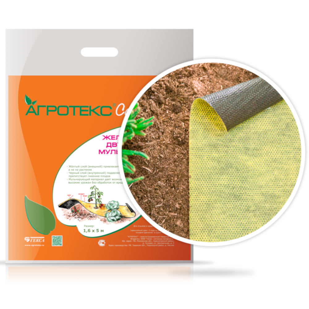 Агротекс ® Сад Двойная защита. Жёлто-чёрный двухслойный мульчирующий материал 80- 1,6*5м (в кор)