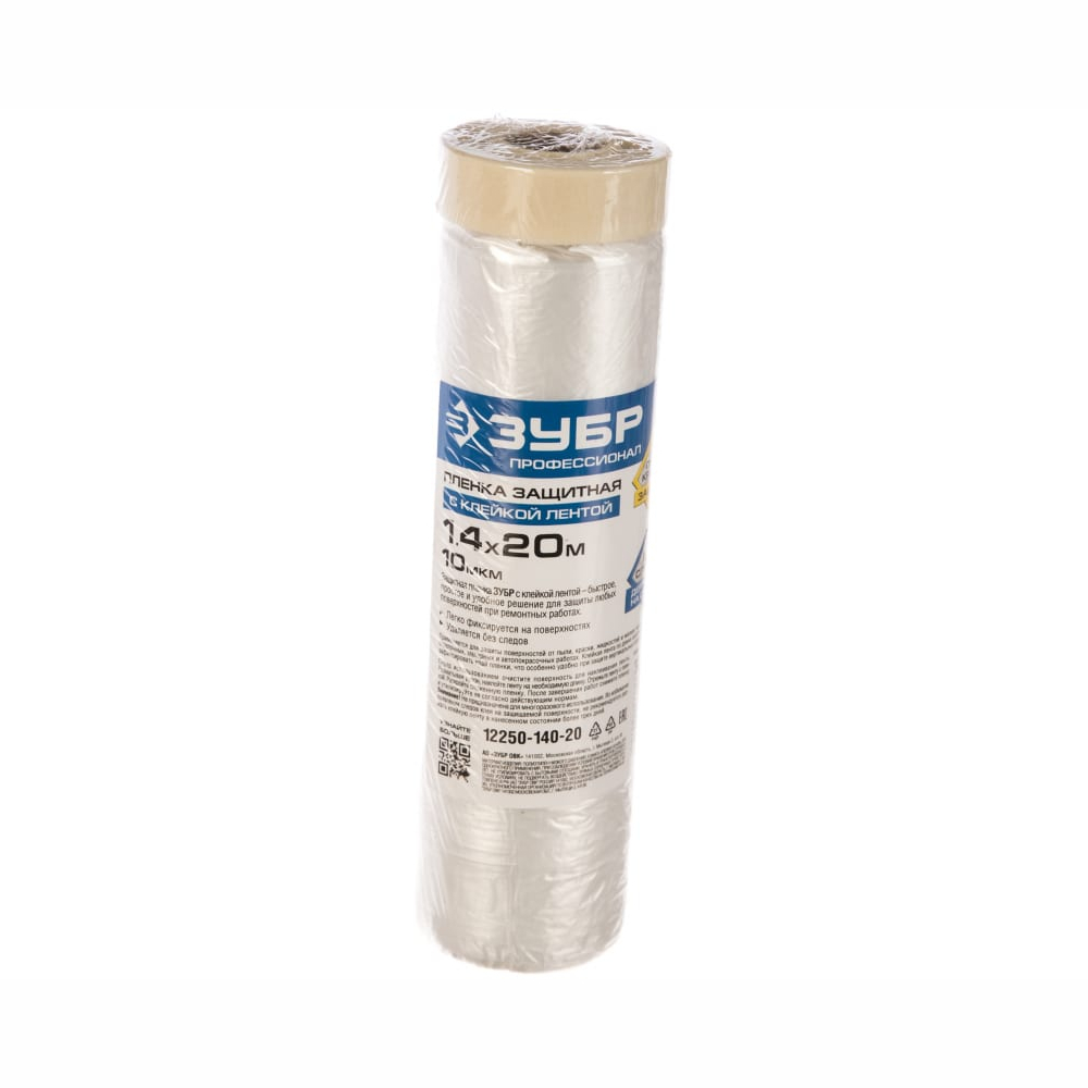 Пленка ЗУБР "ПРОФЕССИОНАЛ" защитная с клейкой лентой, HDPE, 10мкм, 1,4х20м