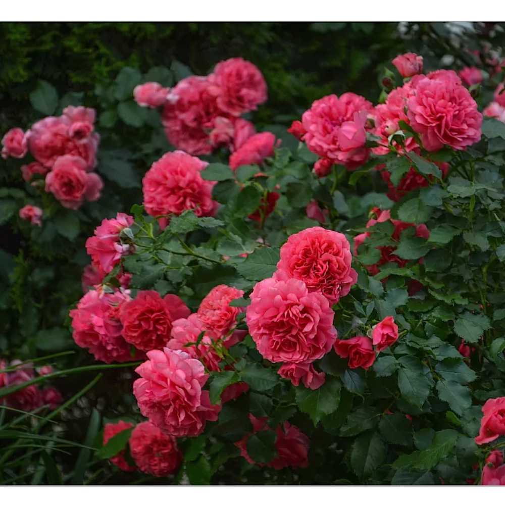 Сорт с крупными, махровыми цветками потрясающего цвета, которые прекрасно выдерживают как жару, так и дождь. Роза обильно цветет все лето. Цветки белые или очень бледно розовые, с ярко-красными краями, но поскольку лепестков очень много, общий эффект скорее красный, чем белый. Цветки чашевидные, с закрученной серединкой, так что форма ближе к старинным розам, чем к современным. Цветки появляются по одному либо кистями до 5 шт., и превосходно стоят в срезке. Листва обильная, крупная. Не болеет. Побеги жесткие, так что сорт можно выращивать как шраб.