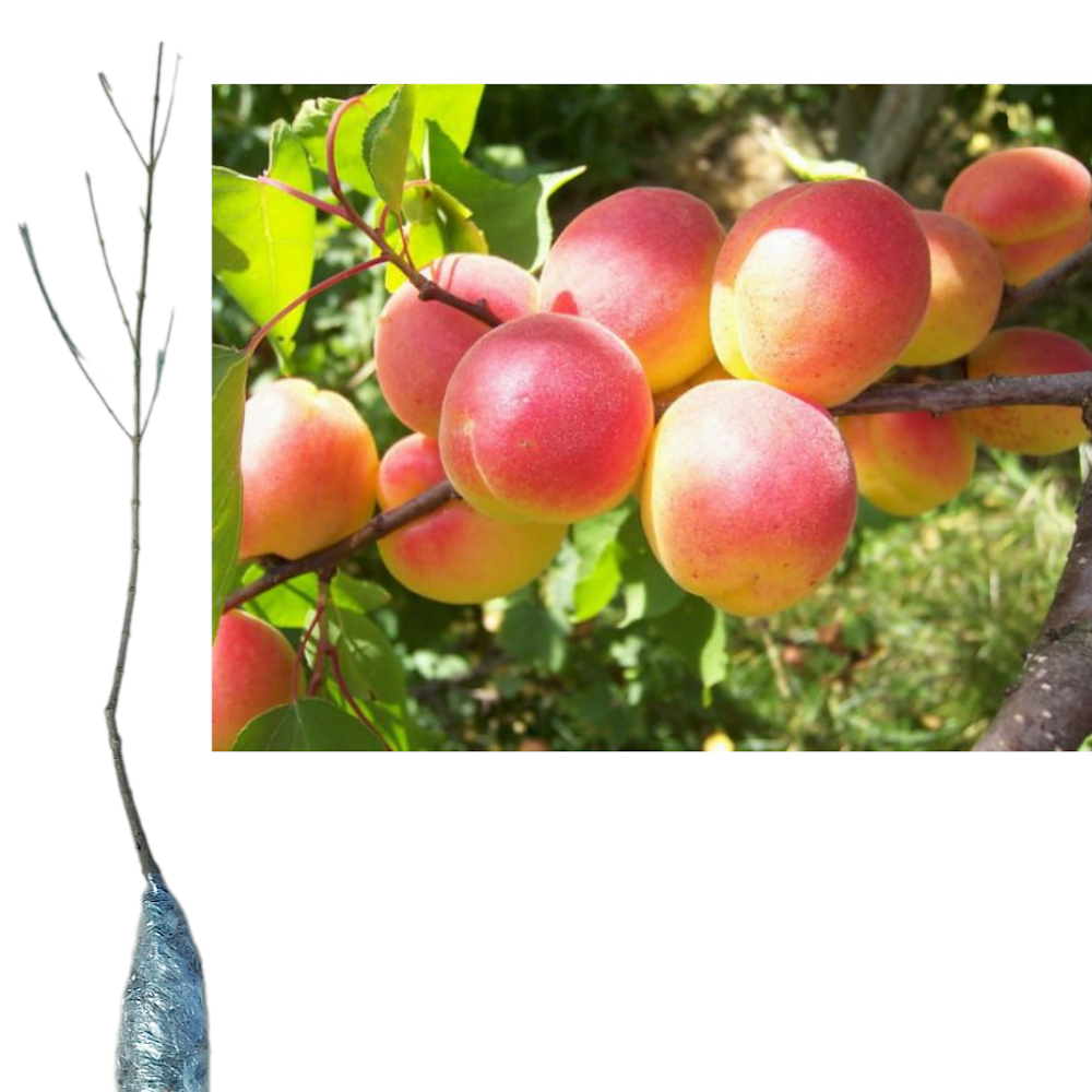 Саженцы Абрикоса Краснощекого представляют собой сильнорослые деревья с редкой округло-раскидистой кроной. В период цветения, который приходится на март-апрель, дерево покрывается красивыми розовыми цветами. Плоды имеют средние и крупные размеры (около 40-52 грамм), округлую плосковатую форму и глубокое брюшное углубление. Основная окраска плодов золотисто-оранжевая с характерным красивым румянцем, кожица бархатистая и довольно тонкая. Мякоть светлая, ароматная, с приятным кисло-сладким вкусом. Плоды отлично подходят для употребления в свежем виде, приготовления компотов и сухофруктов.