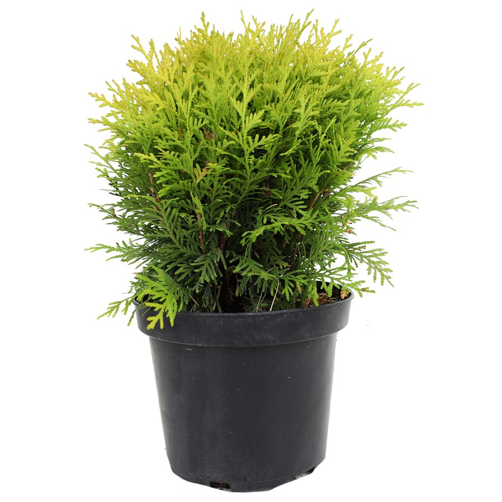 Туя шаровидная Мириам - Мутант от сорта «Danica»/ Карликовая шаровидная форма. Растёт медленно, к 10-ти годам высота 40-50 см. Хвоя жёлтая, зимой зелёно–оранжевая с коричневым оттенком. Хорошо растёт на любой достаточно влажной дренированной почве, на солнечных местах. Рекомендуется для каменистых и приусадебных садов в японском стиле, а также контейнеров - в качестве интересного цветового акцента.