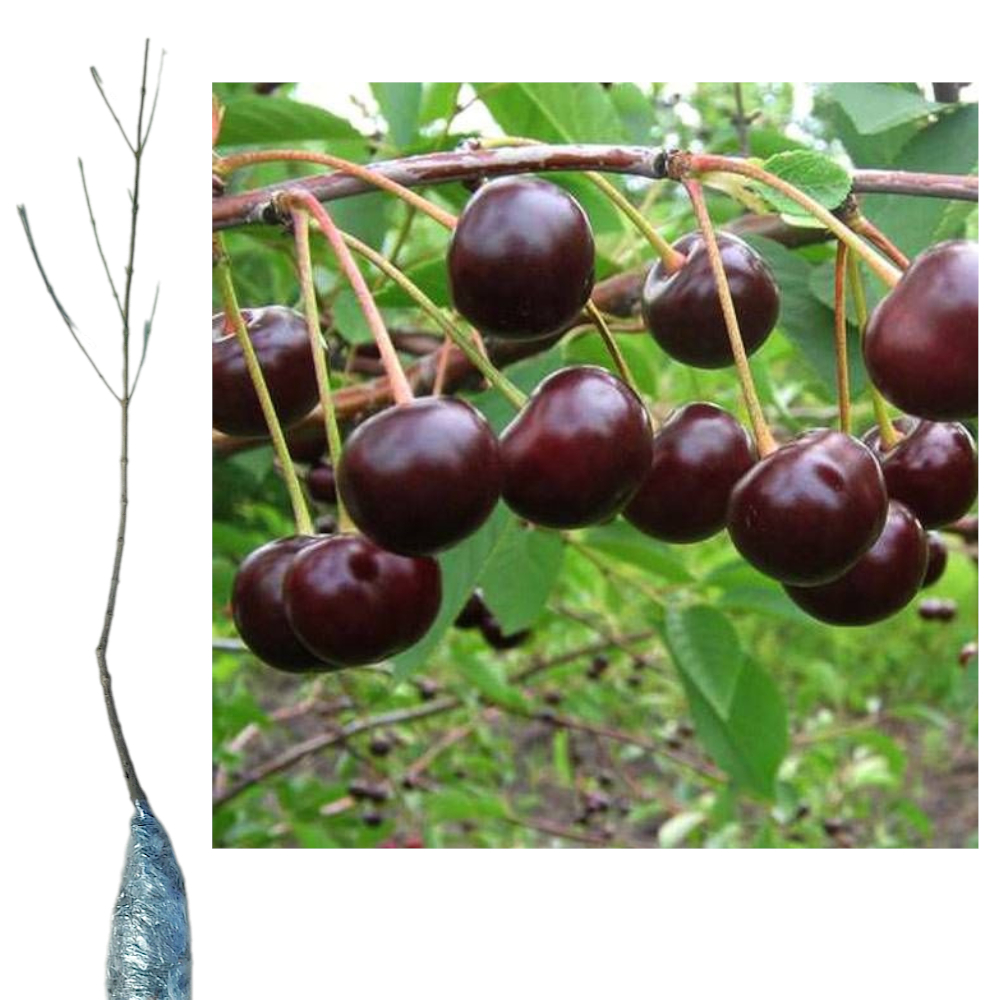 Саженцы вишни представляют собой посадочный материал деревьев или кустарников (от 1,5 до 10 метров), с характерными темно-зелеными листьями и белыми цветами, приносящих кисло-сладкие плоды-костянки. Описания сортов различаются по размеру дерева, форме кроны, срокам созревания, вкусу и размеру ягод, а также по устойчивости к болезням и морозам, требованиям к опылителям и скороплодности.