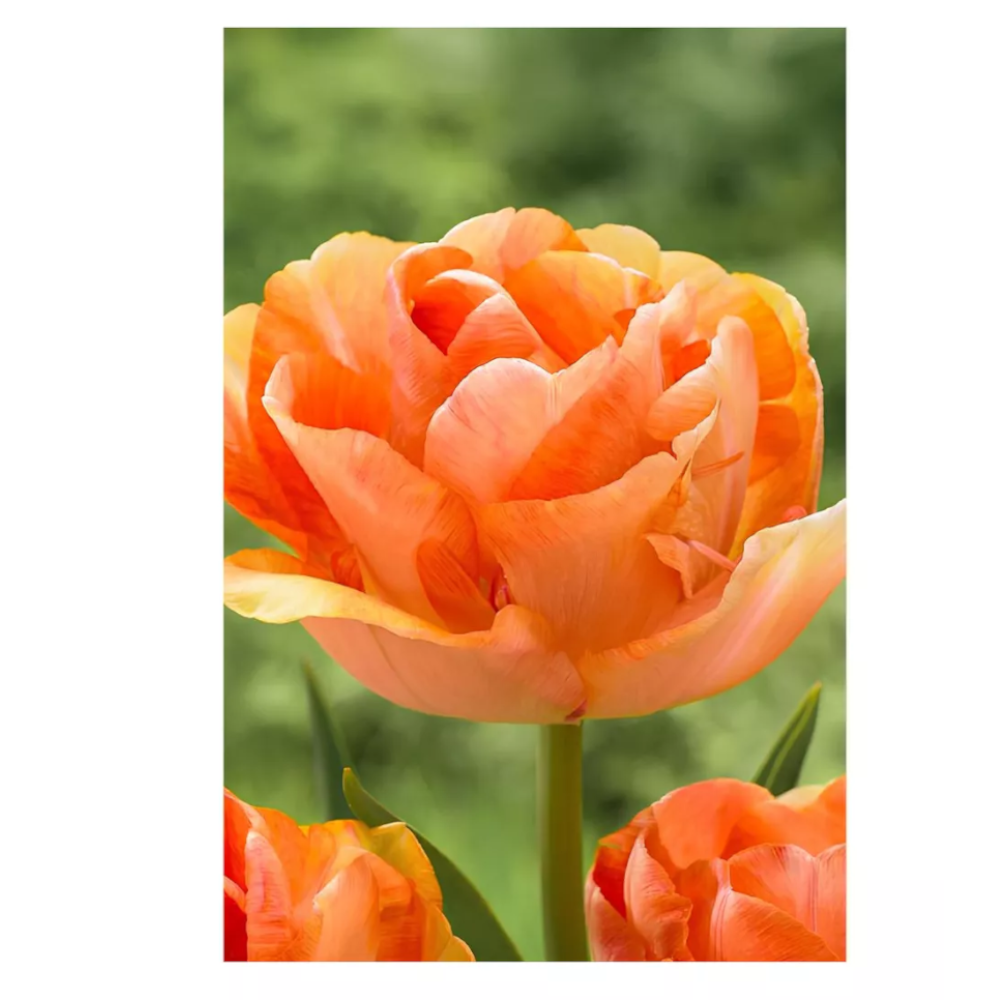 Тюльпан махровый поздний Чарминг Бьюти 11-12/К - это настоящая жемчужина среди цветов вашего сада. Его стебель прочный и изящный, достигает высоты до 30-40 см, что делает его идеальным выбором как для групповых, так и для одиночных посадок. Листья тюльпана зеленые, создавая яркий контраст с его цветком кораллово-абрикосового оттенка, переходящего в теплые палево-желтые тона.