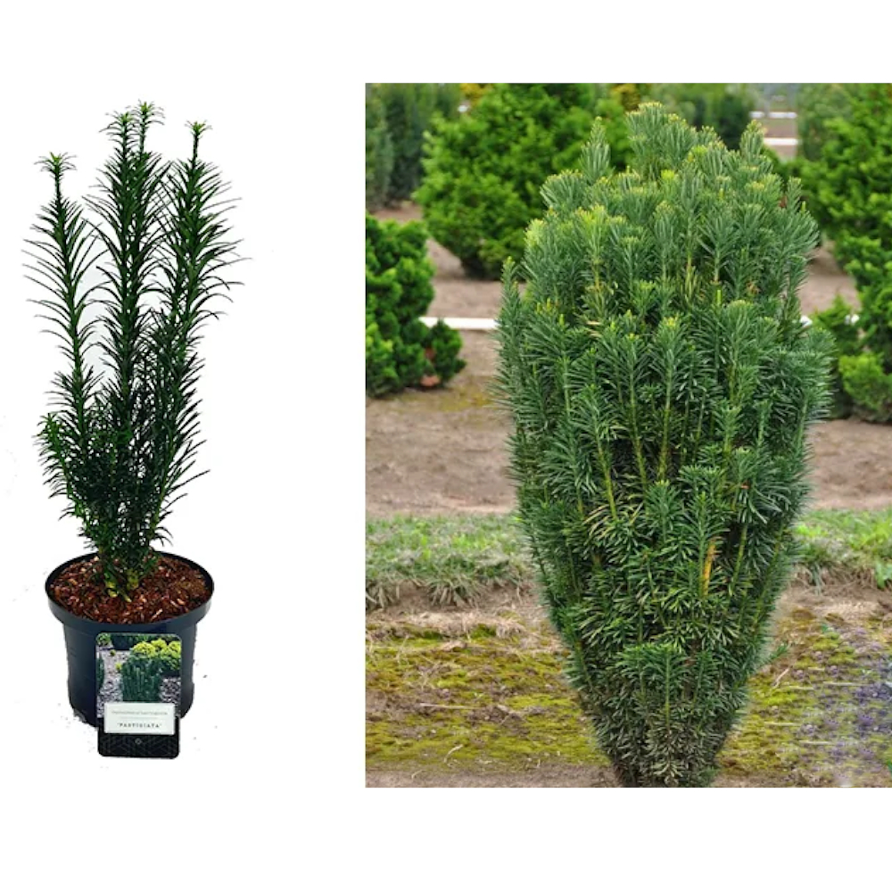 Вечнозеленый, колоновидный кустарник, строго вертикальный, малоразветвленный, с очень густо расположенными ветками, с возрастом более воронковидный или округло-бочковидный, напоминает темно-зеленый колоновидный тис с грубыми чешуйками. Медленнорастущий. Хвоя игольчатая, расположена по спирали, 4,5 -6,5 см длиной и 4-5 мм шириной, темно-зеленая, глянцевая, очень декоративная. Конечная высота более 2-3 м в 10 лет.