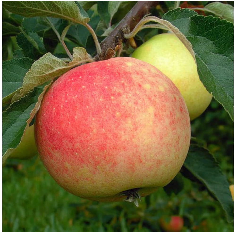 Яблоня Мечта/подвой 54-118. Срок созревания: летний. Яблоки готовы к сбору в первой половине августа. Дерево среднерослое, достигает в высоту 3,5-4 м с прямостоящим мощным стволом и серо-коричневой корой. Крона округлая, раскидистая, со временем требует формирующей обрезки из-за склонности к загущению. Основной окрас яблок зеленовато-желтый, на солнечной стороне появляется нежный розово-красный румянец в виде штрихов. Мякоть белая с розоватыми прожилками, сочная, зернистой консистенции, с прекрасным сбалансированным кисло-сладким вкусом.