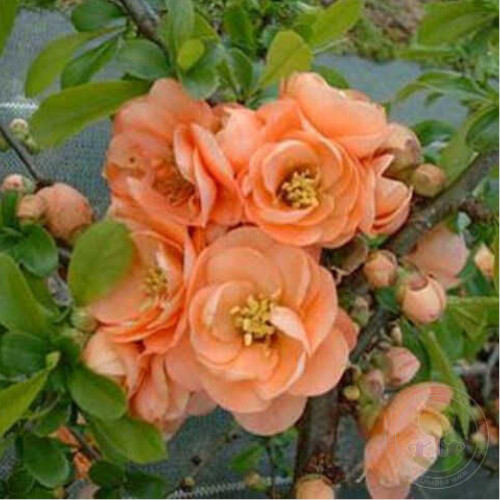 Декоративный кустарник высотой 100-150 см и шириной 200 см. Побеги густо разветвлённые, вначале растут прямо, затем – в стороны. Листья длиной 5-10 см, тёмно-зелёные. Цветки диаметром 2,5-5 см, в соцветиях по 2-5, лососёво-розовые, полумахровые. Цветение обильное, в апреле, до распускания листьев. Плоды зеленовато-жёлтые, диаметром 4-7 см, ароматные, съедобные, созревают в сентябре. Место солнечное. Почва дренированная. Идеальное растение для небольших садов, подходит для низких живых изгородей. Зона 5 (до -23°С).