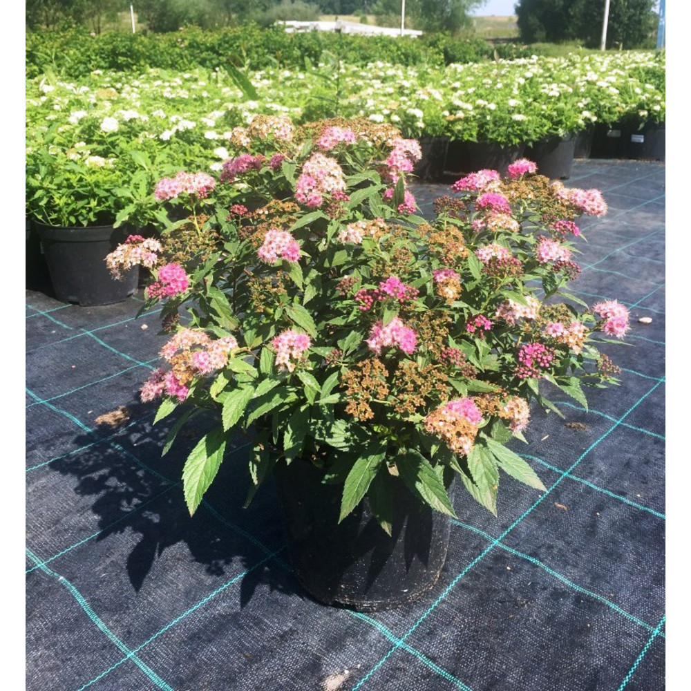 Низкий кустарник 0,6—0,8 м, ширина около 1 м. Побеги красно-коричневые, листья тёмно-зелёные. Эффектная особенность этого интересного сорта:цветки -многоцветкового окраса:белого, розового и красного цвета одновременно присутствуют в каждом соцветии. Цветение: июль-август. Листья узколанцетные, темно-зеленые до 2 см длиной. Этот невысокий кустарник-хамелеон может с успехом украсить низкий бордюр и альпинарий, различные композиции с хвойными и другими кустарниками. После четвертого года культуры рекомендуется ежегодно весной обрезать всю верхнюю часть куста на высоте 25-30 см от земли. Изображения товаров на фотографиях, представленных на сайте, могут незначительно отличаться от оригиналов.