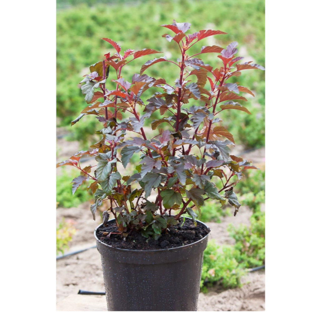 Пузыреплодник калинолистный сорта Диабло завоевал любовь и внимание за свои декоративные качества и неприхотливость в уходе. Уже два столетия его используют в озеленении территорий, садов и парков. Привлекательный вид куста сохраняется на протяжении всего периода вегетации. Несложный уход за кустарником под силу освоить даже новичку. Куст пузыреплодника Диабло раскидистый, со склонившимися ветвями, которые образуют густую, плотную крону. Листья калиновидные, длиной от 2 до 7 см с 2-3 лопастями. Высота и диаметр растения достигает 3,5 м. Окрас зависит от освещенности и времени года. В тени листья в основном зеленые с пурпурным оттенком. На открытом солнце они багровые или темно-лиловые. Осенью светлеют и приобретают бронзовый отлив. Преобладание пурпурного пигмента связано с нарушением синтеза хлорофилла. Этот недостаток стал главным достоинством растения. Кора тоже имеет темно-бордовый окрас и со временем переходит в коричневый, затем отслаивается. Зацветает сорт Диабло в начале лета ароматными бледно-розовыми соцветиями с красными тычинками, соединенными в букетики-щитки до 5 см в диаметре. Срок цветения — 2-3 недели, но может растянуться и на 2 месяца. Плоды куста — вздутые листовки-пузырьки, которые щелкают при надавливании. После созревания в начале осени они становятся красно-коричневыми и выглядят наряднее, чем цветы. Пузыреплодник Диабло морозоустойчив, почти не подвержен болезням и вредителям. Растет на всех видах почв, в большинстве климатических поясов и быстро набирает зеленую массу. Прекрасно переносит загрязненный воздух мегаполисов. Выносит тень и полутень, что влияет только на интенсивность окрашивания. Пузыреплодник калинолистный предпочитает открытые солнечные места, где приобретает характерную пурпурную окраску. На тенистых участках листва становится более зеленой. Кустарник не требует к себе пристального внимания. Изначально созданные оптимальные условия содержания позволят прожить растению на одном месте до 30-50 лет. Пузыреплодник Диабло поливают по мере высыхания земли, в основном в период засухи. Если летом нет дождей и земля суглинистая, то увлажнение проводят 1 раз в 3-4 дня. На глинистых грунтах достаточно 1 раза в неделю. На взрослое растение уходит примерно 40 л воды. Поливают утром или вечером, чтобы уберечь листья и соцветия от солнечных ожогов. Взрослый пузыреплодник Диабло спокойно выдерживает низкие температуры. В суровые зимы подмерзают кончики побегов или молодые ветки, но это не сказывается на общем состоянии растения и его декоративных качествах. Под молодыми кустами зону корней мульчируют и накрывают лапником. Если прогнозируют сильные морозы, то делают более тщательное укрытие. Куст стягивают шпагатом, а сверху накрывают свернутым в конус рубероидом или обматывают лутрасилом. Для размножения пузыреплодника Диабло применяют вегетативные способы и посев семян. Изображения товаров на фотографиях, представленных на сайте, могут незначительно отличаться от оригиналов.