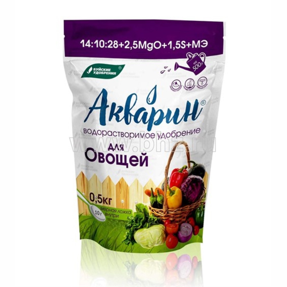 Акварин для овощей - водорастворимое удобрение, в состав которого входит азот, фосфор, калий, магний, сера и микроэлементы – железо, цинк, марганец, медь в хелатной форме, а бор и молибден – в минеральной. Благодаря кислой реакции (рН) удобрения, оно легко растворяется в холодной воде и более эффективно усваивается корневой системой или листовой поверхностью растений.