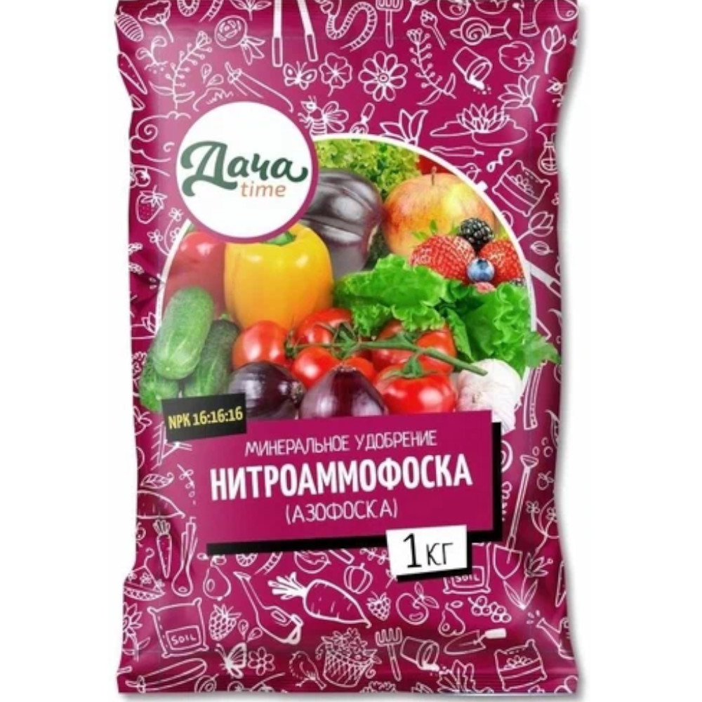 Азофоска 1кг (Нитроаммофоска) Дачаtime (NРК-16:16:16) 12/1080 используют для основного, допосевного и местного внесения в рядки при посеве, а также для подкормки растений.