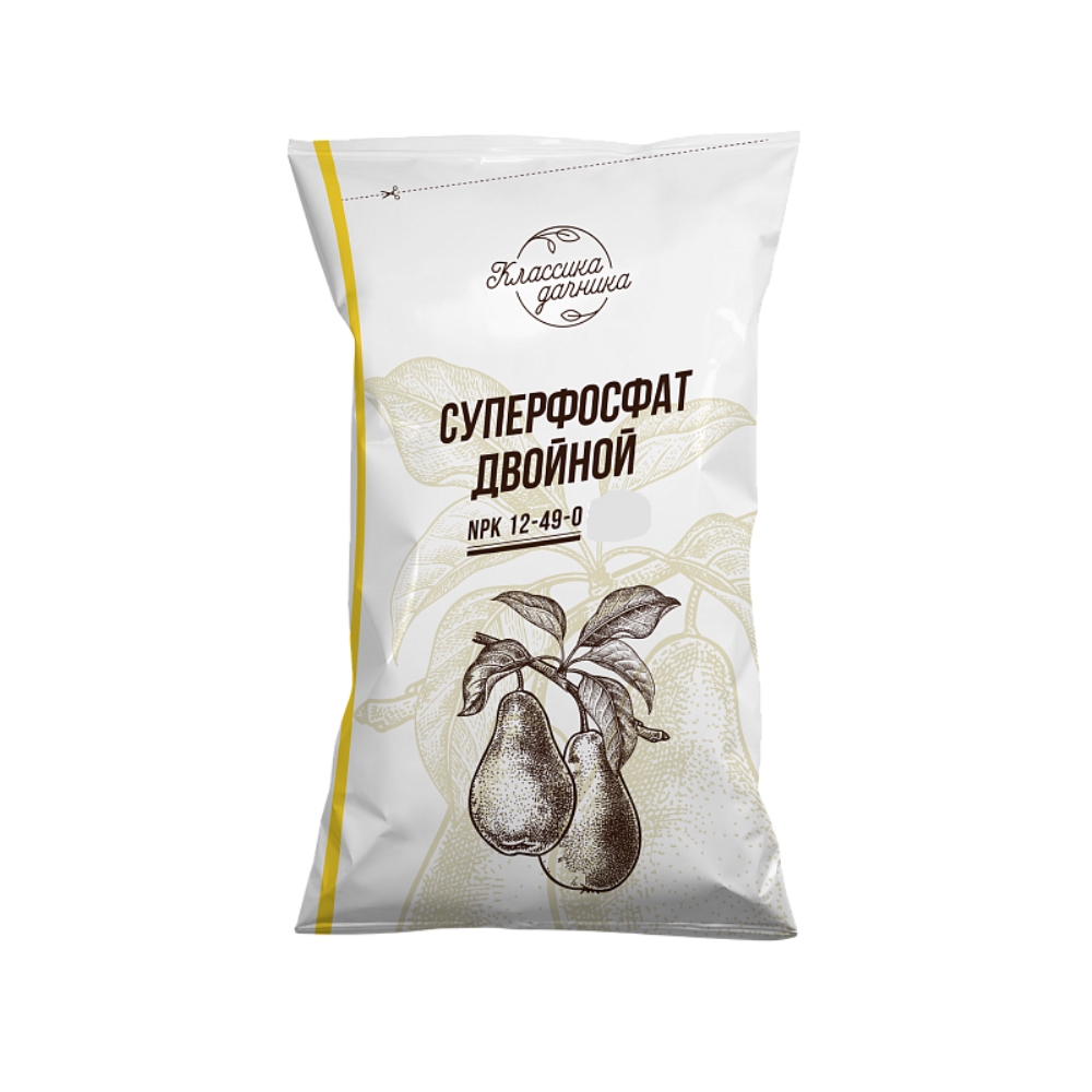 Суперфосфат двойн. азотосодер.1 кг Классика дачника (NPК-12:49:0) 5/30/1050 - высококонцентрированное фосфорное удобрение. Используется для основного и предпосевного внесения, а также для подкормок овощных, плодово-ягодных, цветочных и других культур, выращиваемых на всех типах почв. Обеспечивает развитие корневой системы, ускоряет рост и цветение растений, созревание плодов.
