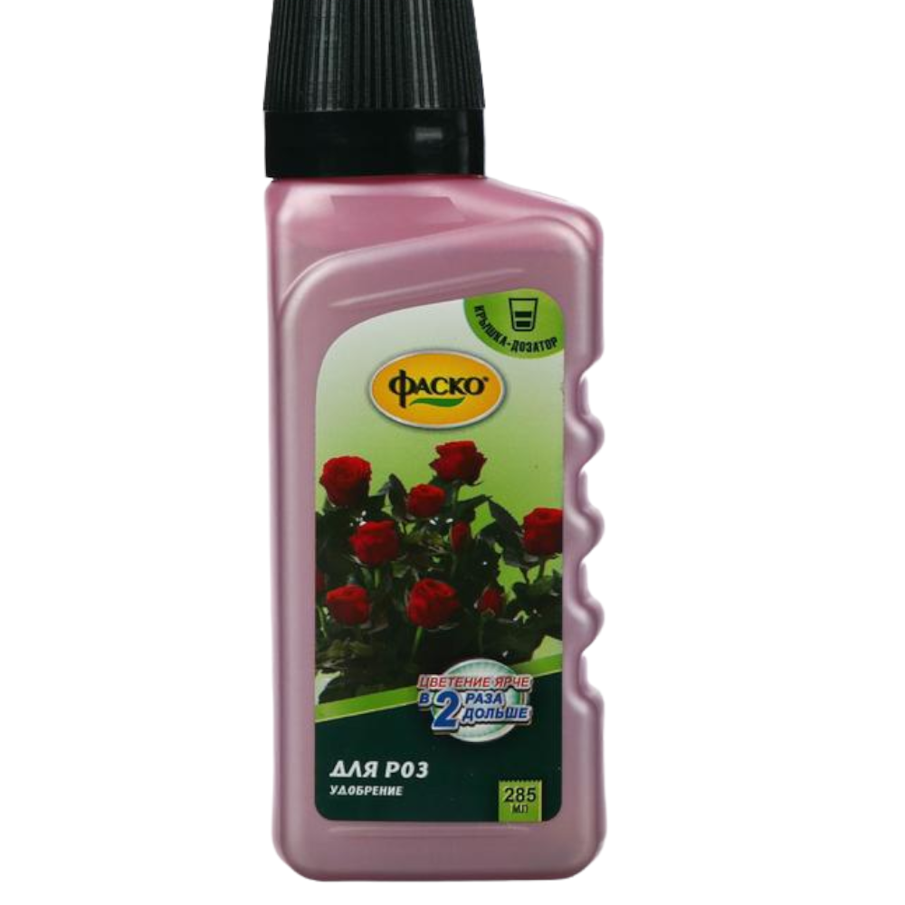 Жидкое минеральное удобрение Фаско Цветочное счастье для роз 285 мл используется для подкормки розоцветных.