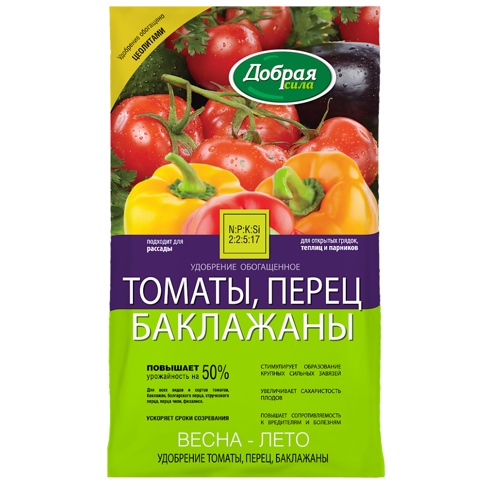 Для томатов,перцев,баклажанов 0,9кг Добрая Сила мин.удобрение 6/12/576 БФ