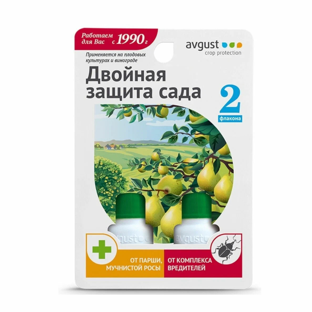 «Двойная защита» создана специально для комплексной обработки плодовых, ягодных, цветочных и декоративных культур.