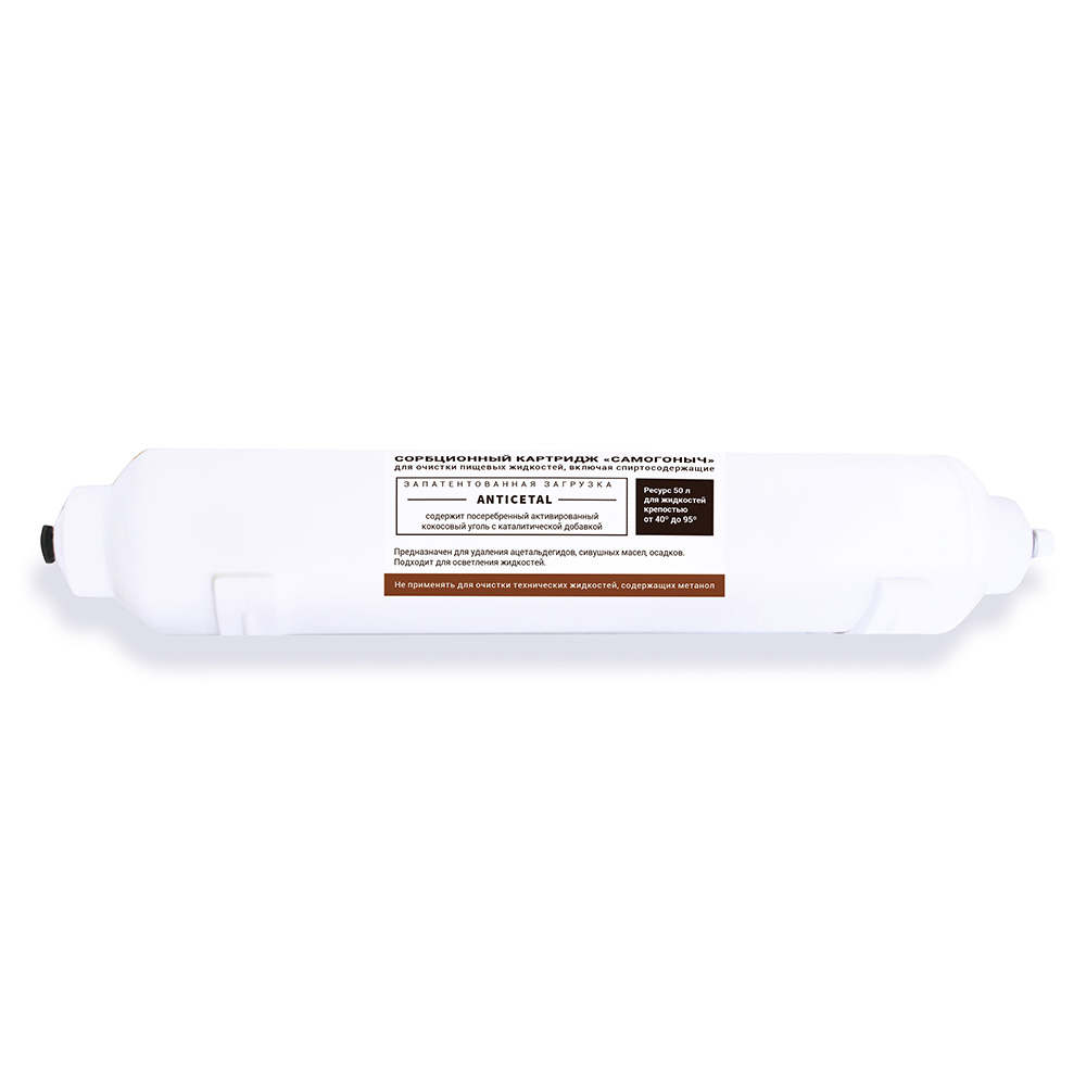 Картридж для фильтра Самогоныч разработан специально для очистки спиртосодержащих жидкостей. Для фильтрации используется запатентованная нагрузка на основе материала Anticetal и высокоэффективный кокосовый активированный уголь - удаляет сивушные масла и альдегиды, опасные соединения и остатки; улучшает вкусовые качества покупных и приготовленных в домашних условиях спиртных напитков.