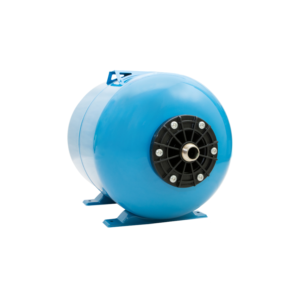 Необходимая модель гидроаккумулятора выбирается в зависимости от мощности и объема потребляемой воды насосом. Для поверхностных насосов рекомендуется использовать горизонтальные гидроаккумуляторы, для погружных - вертикальные или горизонтальные. Для насосов с мощностью до 500 Вт необходимы гидроаккумуляторы емкостью 24 л, до 1 кВт - 50 л, до 1.5 кВт - 100 л. Корпус выполнен из стали и имеет комбинированный фланец с резьбовым штуцером с наружной резьбой 1". Фланец изготовлен из пластика и оснащен латунным резьбовым соединением, что позволяет увеличить срок его эксплуатации, не опасаясь срыва резьбы при монтаже.