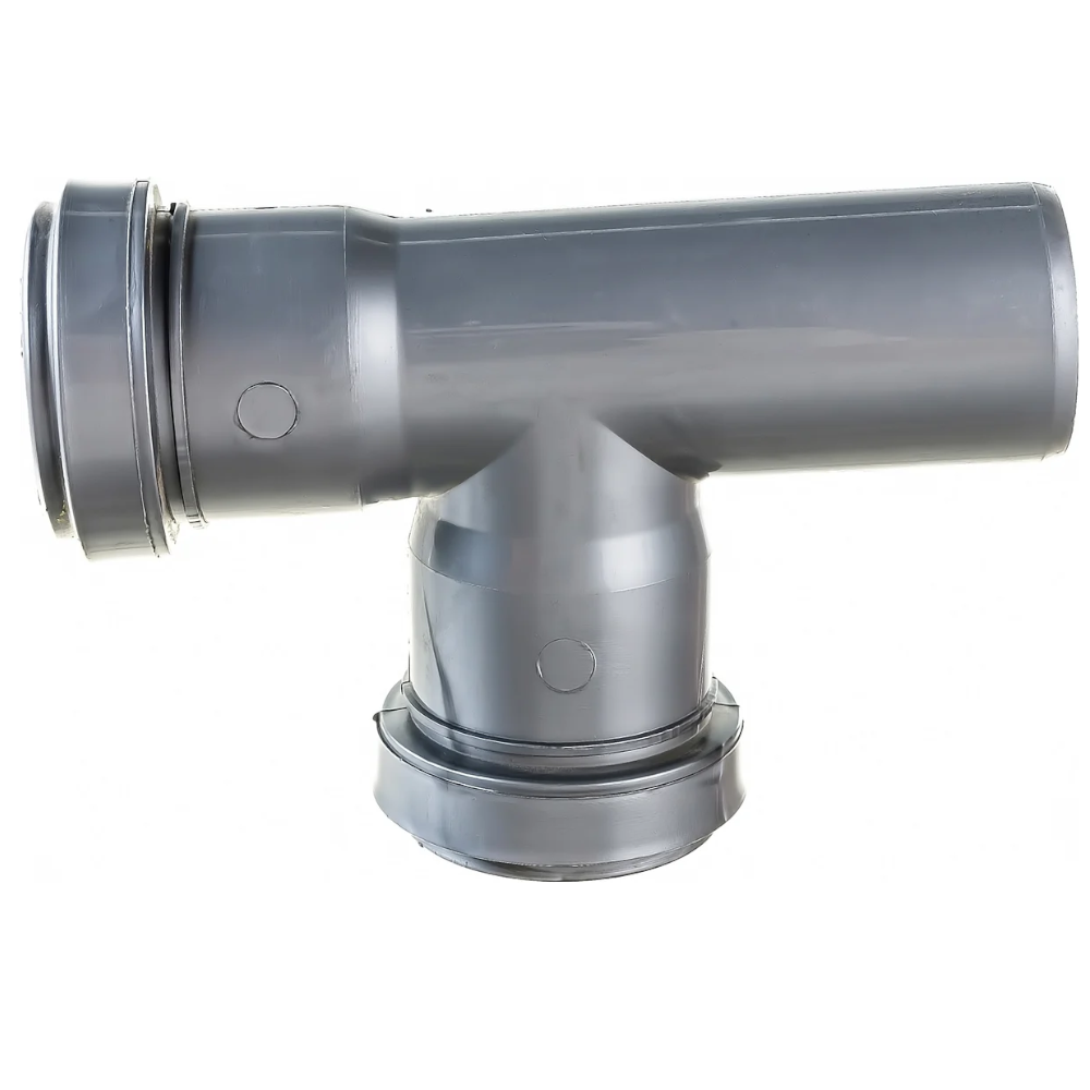 Тройник 40х40х90 предназначен для монтажа разветвления трубопроводов в системах внутренней канализации. В качестве уплотнителей используются резиновые кольца манжетного типа с распорным вкладышем.