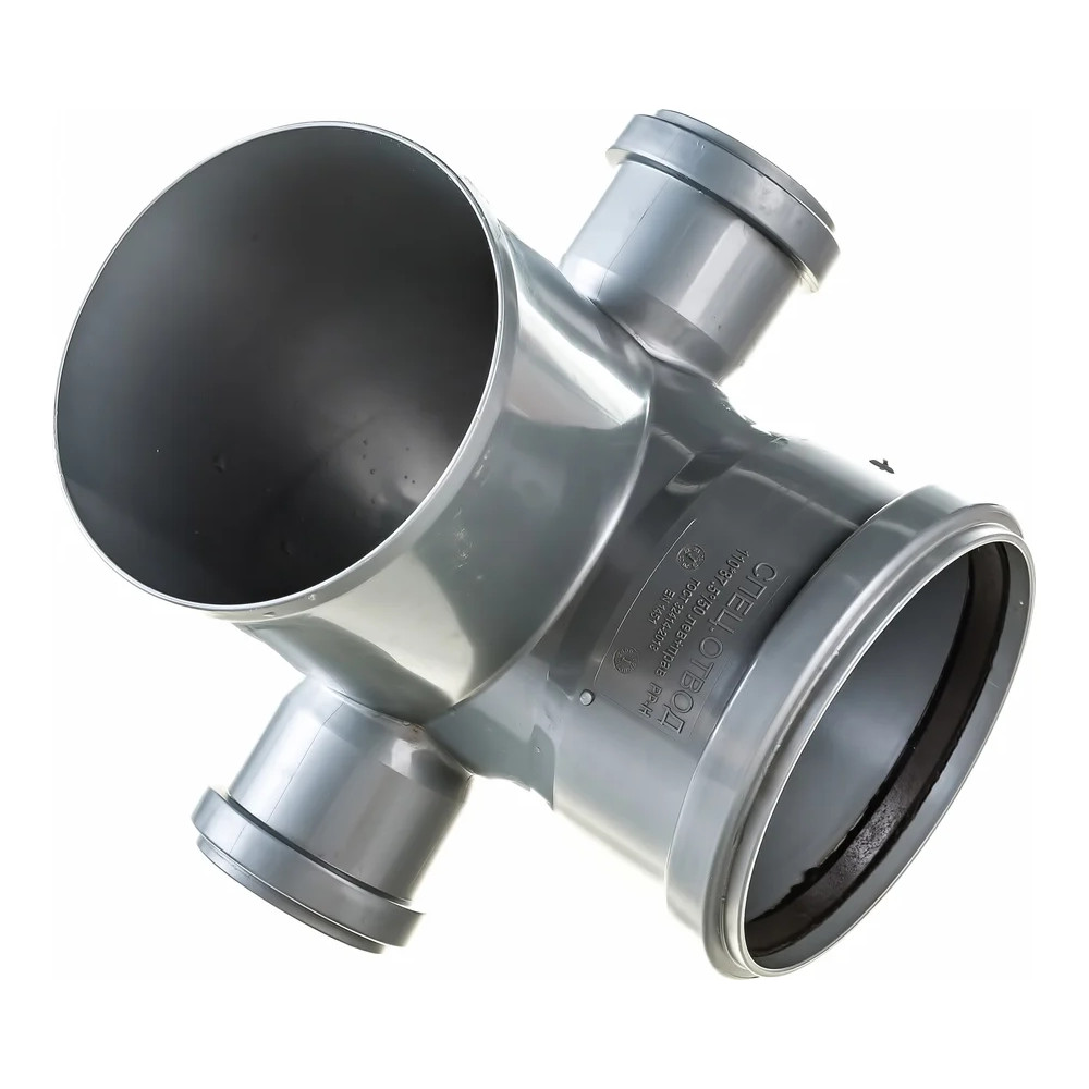 Отвод 110/90 с 2 выходами на 50 верх+сзади предназначен для изменения угла наклона стояка или трубопровода. Канализационный фитинг с одной стороны имеет раструбную форму, а с другой муфтовую. Благодаря этому отвод для канализации очень прост и удобен в монтаже. Часто при проведении работ по монтажу систем канализации возникает необходимость изогнуть или повернуть трубопровод в нужном направлении, для этих целей и используют отводы для канализации. Отводы для канализации различаются по диаметру и углу наклона. Канализационный уголок с отводом предназначен для изменения поворота трубопровода на угол 90 (87,5) градусов. Монтаж спецотвода левого желательно производить с применением специальной силиконовой смазки.